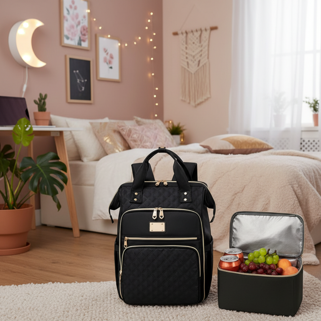 Mochila 3 en 1 con amplio espacio interior, compartimento para laptop, y lonchera térmica removible para mantener tu comida fría o caliente por horas. Perfecta para mujeres trabajadoras, estudiantes y quienes buscan estilo + funcionalidad.